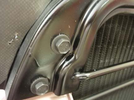 Is there something to secure the hood prop into the mounting hole at the radiator? It will be fine when the hood is up or the prop is in the stored position. However, it can be easily removed in transition. This is one photo I didn't take when taking the car apart! Never enough photos.