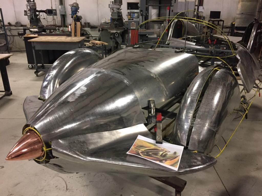 Wray has been fascinated by a drawing made by Virgil Exner Sr. in 1947 of a proposed futuristic Studebaker, so much so that he is fabricating a body to build one. There was only one view of the car ever drawn up, as far as Wray knows, and nothing was ever built. But, someday soon, there may be a real one. He wants to have it be electric powered.