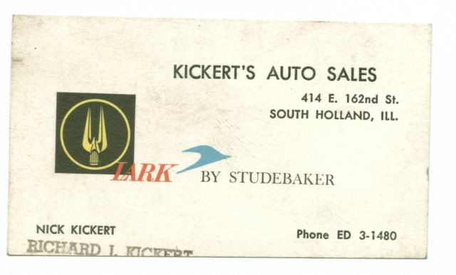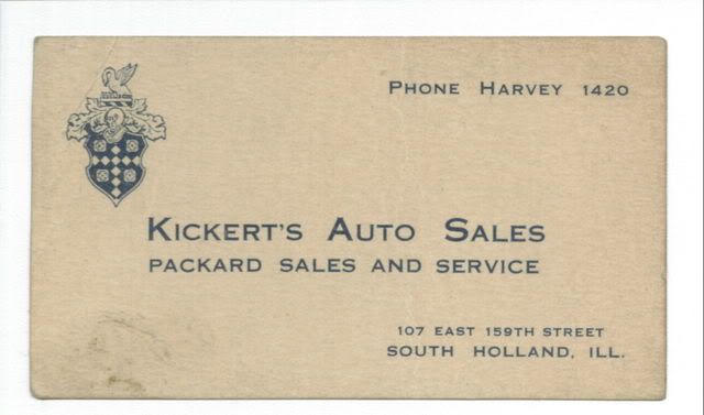 And John, here is the business card from Kickert's from their Studebaker days!Originally posted by Bordeaux Daytona View PostHere's a business card from Kickert's in South Holland when they were a Packard dealer. I found it in a wallet that was thrown out after the estate sale of Richard "Whitey" Kickert. I think I might have posted it before but not in this thread.