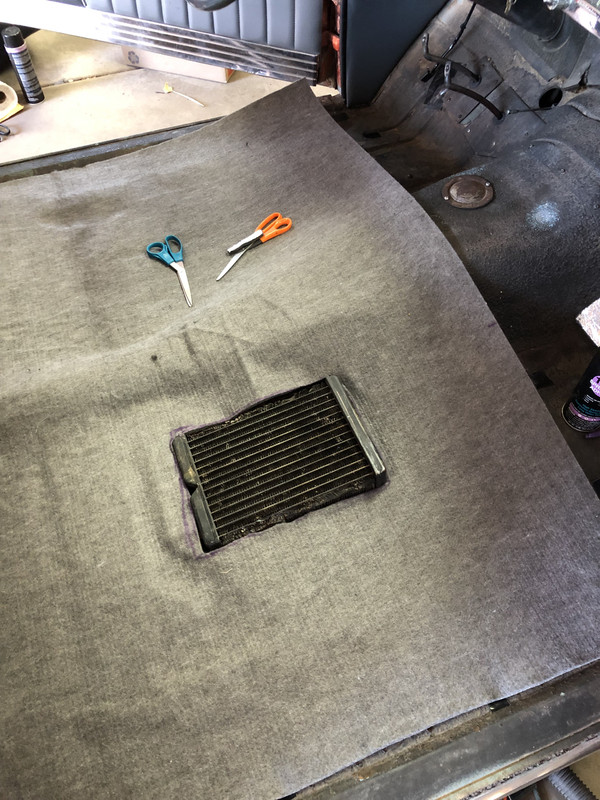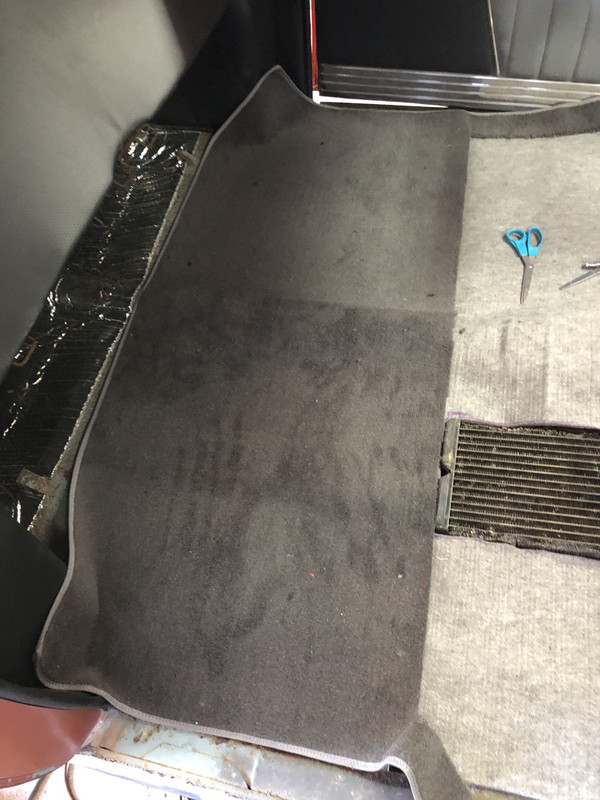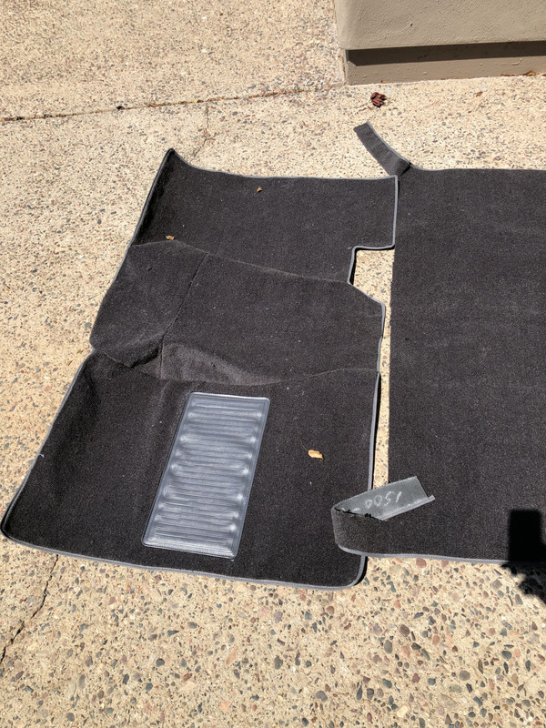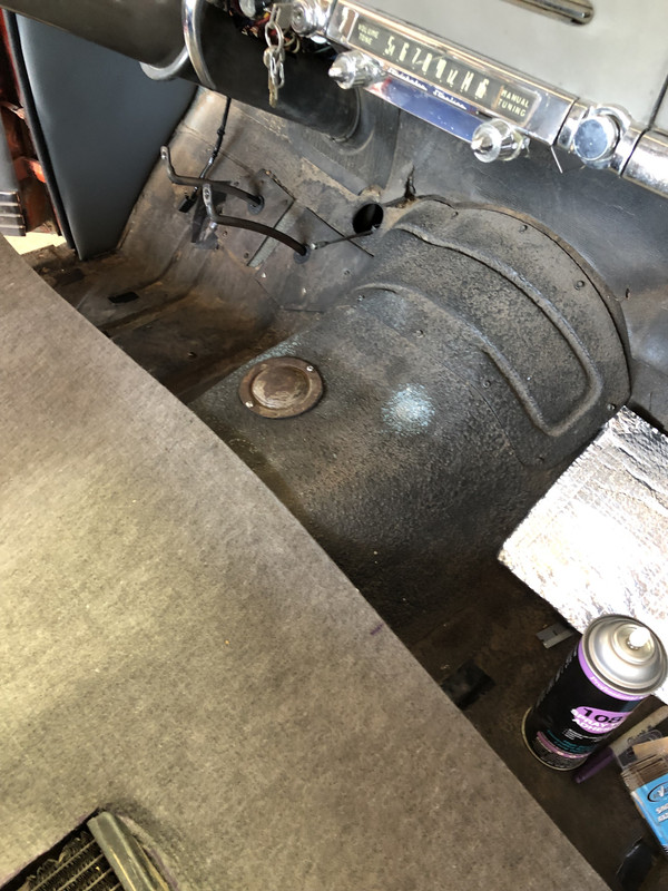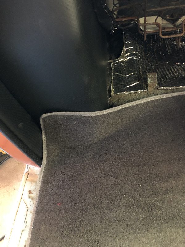 Starting the last step and installing the new carpet kit. Everything is going in well and I think I have the rear under control. The one thing I am unsure of is the brake and trans holes. I think I will leave the brake hole uncut and just make it to where I can pull the carpet back. I rebuilt the brakes and there does not seem to be a leak. The transmission hole is another story. My transmission leaks so I will need access to it. My thought was to cut out the hole from the carpet. If you look I need to cut the corners out of the back and that is enough carpet to glue onto the top of the cover plate. It will be larger than the hole and will cover. I have black or gray edging material I can sew onto the outer edge. I would just not glue where the screw heads are so I have access to them. The cover has a thick rubber seal I made so it does not leak air. Am I missing something?