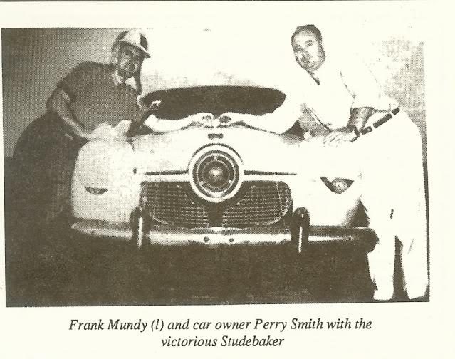 ...Mundy took a sizeable slice of the prize money in a primarily red generic car having 27 graphics. Marshall Teague of Daytona Beach was second in a primarily blue generic car having 23 graphics, and Buck Baker of Charlotte was third in a primarily yellow generic car sporting a record-number 28 graphics....