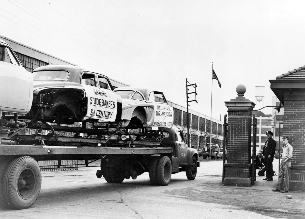 Originally posted by 62champ View PostI believe before the overhead conveyor system was installed, all the bodies were brought across Sample St. there in South Bend to be put in line for final assembly - someone else can clarify if that does not make sense...That's correct, Patrick (and Joe). Bodies were trucked over in small loads, as seen here (terribly inefficient) before the conveyor system was installed to carry them across Sample Street.