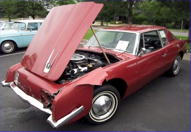 A guy with a 64 Avanti I should say almost perfect Avanti ran into the back of another car 2 blocks from the meet bent the bumper and broke the left front fender into quite a few pieces. studedude will take pictures tomorrow. Like I said I can't hold the camera still.