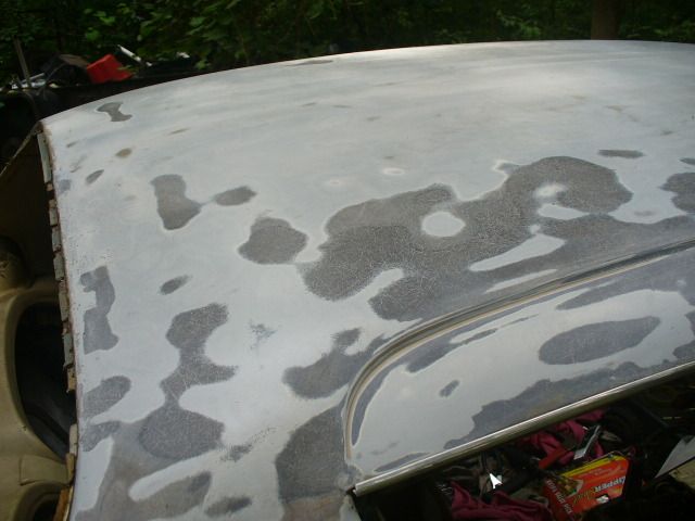 Folks on the forum warn you about the use of a DA sander to remove paint from a fiberglass car. Just as proof, here is what the PO did with a DA when he attacked the roof. You can see it's down past the gel coat in many places.