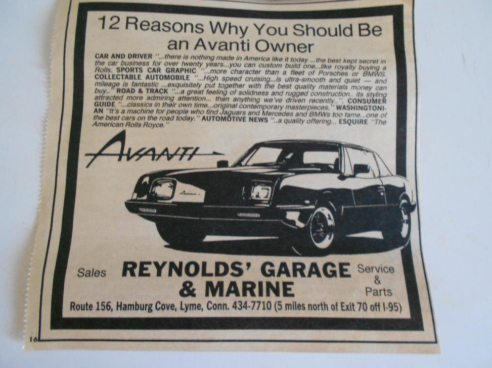Frank: Thanks! Haven't seen many ads like that for the later Avanti autos.