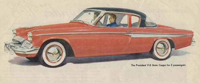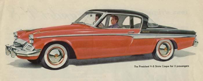 Studebaker made a lot of changes during the 55 model year, I think around January 1. The early V8 engine was 224 cu.in (for the Commander) and the late was 259 cu.in. They also changed the way the car was painted if it was a two tone. Here is what the early two tone looked like. I used the president because they used the same colors in the brochure, but Commanders and Champions were painted the same way.