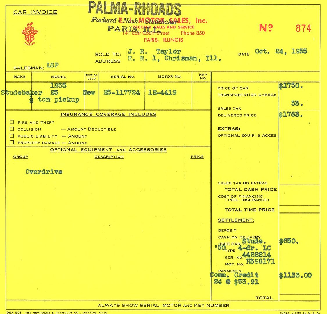 Dad was, in fact, the salesman of record for one new 1955 Studebaker pickup: