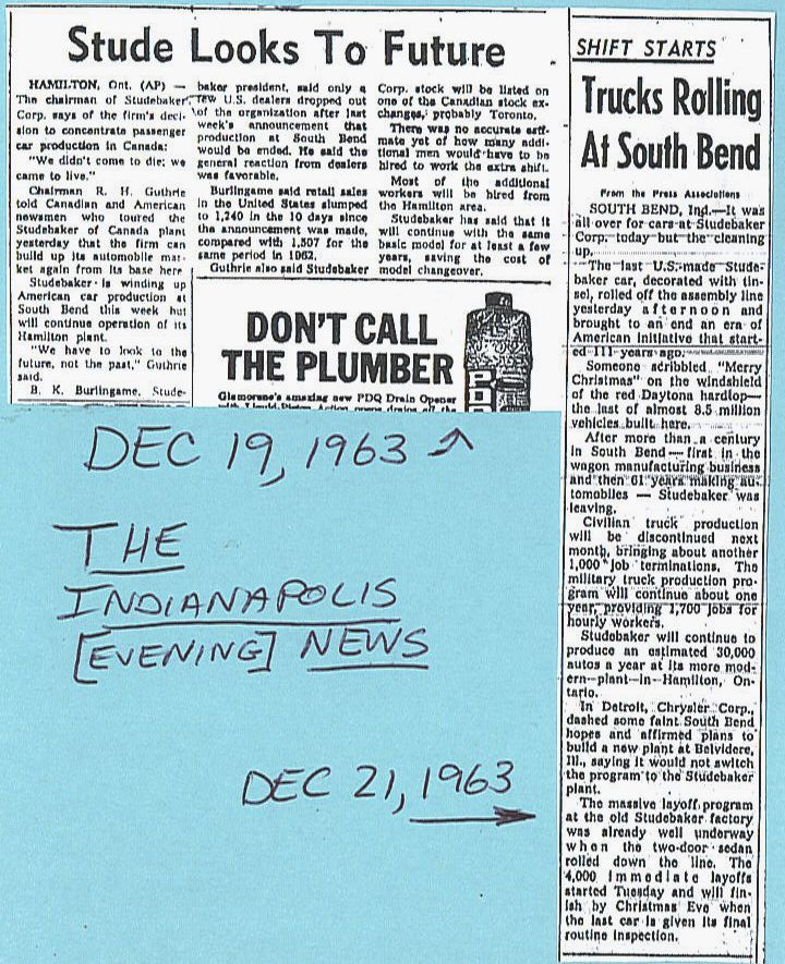 Gad, I would have thought Studebaker's closing would have made one of the polls, if not both of them...but there it was in black and white: Studebaker's South Bend closing was not considered a Top Ten Indiana news story in 1963. Unbelievable.