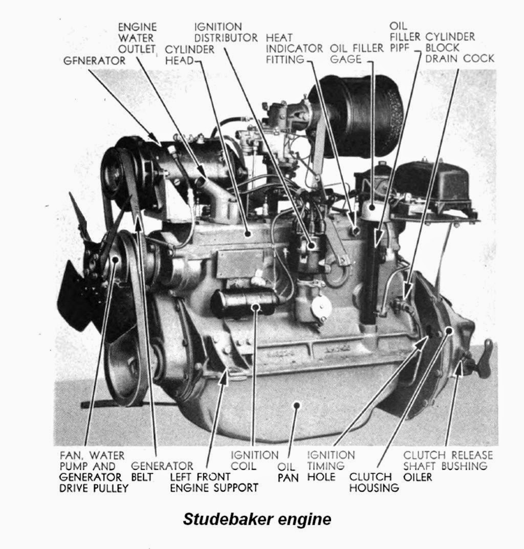 | Studebaker Model 6-170 Champion 6-cylinder 70 hp (56 kW) 12 V 3 speeds 2 speeds |