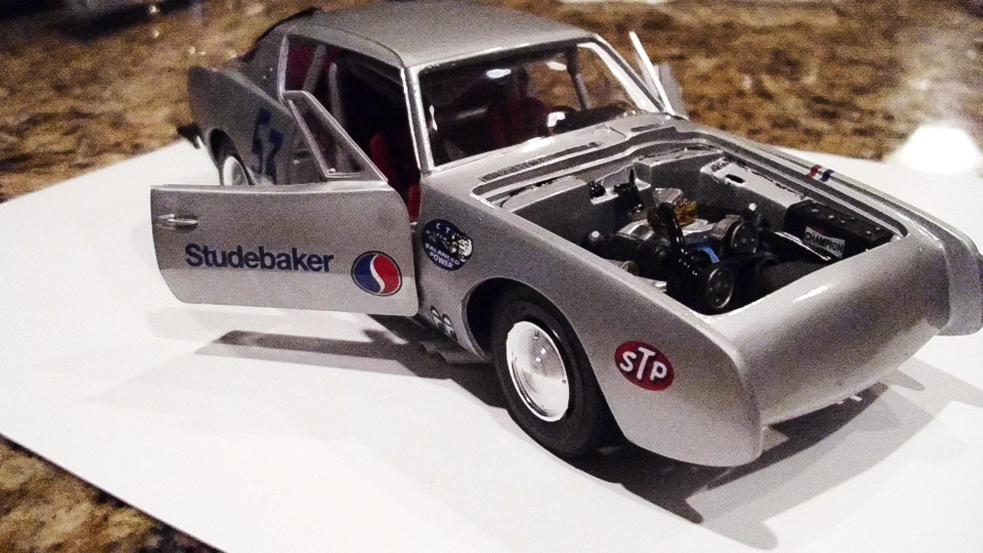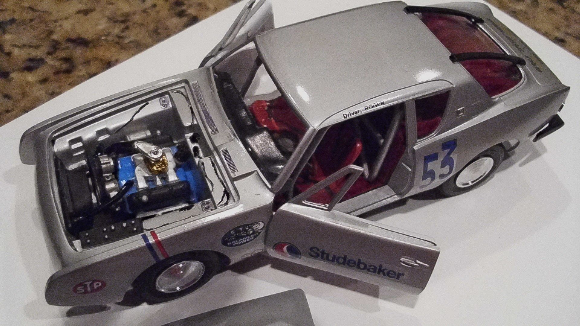 Just finished this one up today. Re-issue of the AMT kit. For it's age is it pretty clean, not much flash. Some mods are as follows. Filled the headlights and molded up the front end for a cleaner, smoother look. I modified the dash, used masking tape for the seat belts. Used sheet plastic to cover up the rear seat area. I removed the wipers and some emblems. I ground away all the details on the interior door panels and used sheet plastic to make flat panels and painted them silver. The paint is Tamiya Silver Leaf. Decals are from kit and others. It was cleared with high gloss enamel. Comments pro or con are always welcome. I do notice I may have to redo the exhaust as they hang toom low but were ok during mock up. Oh well....