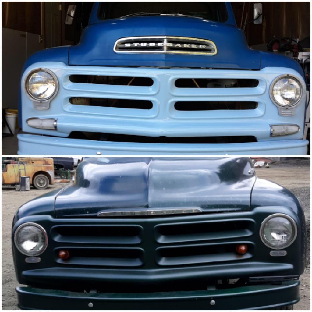 The significant feature of the '54, '55 and '56 "C" Cab Stude. Trucks is the 3 different versions of that neat Four Rectangular openings Steel Grille Panel. The '54 is the rarest of all.