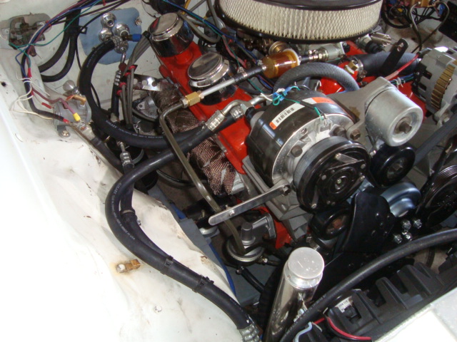 It made a humongous difference. The temp of the AC dryer has dropped about 100 degrees!!! That's amazing!!! I also figured that one of the reasons for the high temps under the hood was as a result of the fact that I didn't have a mechanical fan??? I started to think about it.....then I thought to myself, although I have those nice electric fans on the radiator it doesn't really help with the overall engine temps. I thought to myself...if the engine had an mechanical fan it would continuously blow air "back" around the engine. The electrical fans do a good job of "pulling" air through the radiator but they don't really move any air back to the engine. So I installed the mechanical fan that I had originally put on the engine. It's one of those reverse rotation fans. :